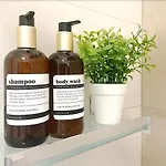 De 3-badkamer accommodatie biedt uitzicht over de tuin aan.